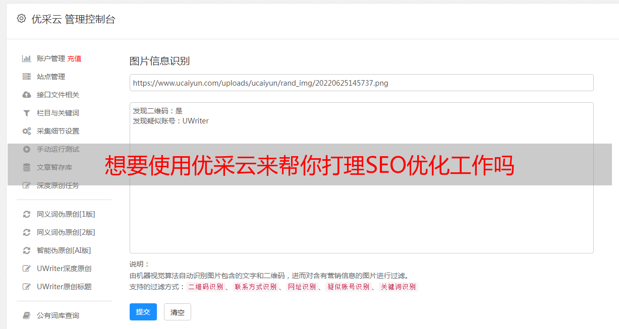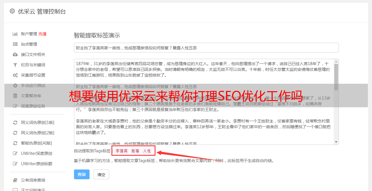 此外,优采云还具有内容去重、内容分词、图片判断、关键词判断、正文排版、内容质量判断等功能,可以有效地保证生成内容的质量。同时,优采云还能够根据用户提供的SEO关键字,将关键字分布到生成内容中,使得生成内容具有很强的SEO优化功能。