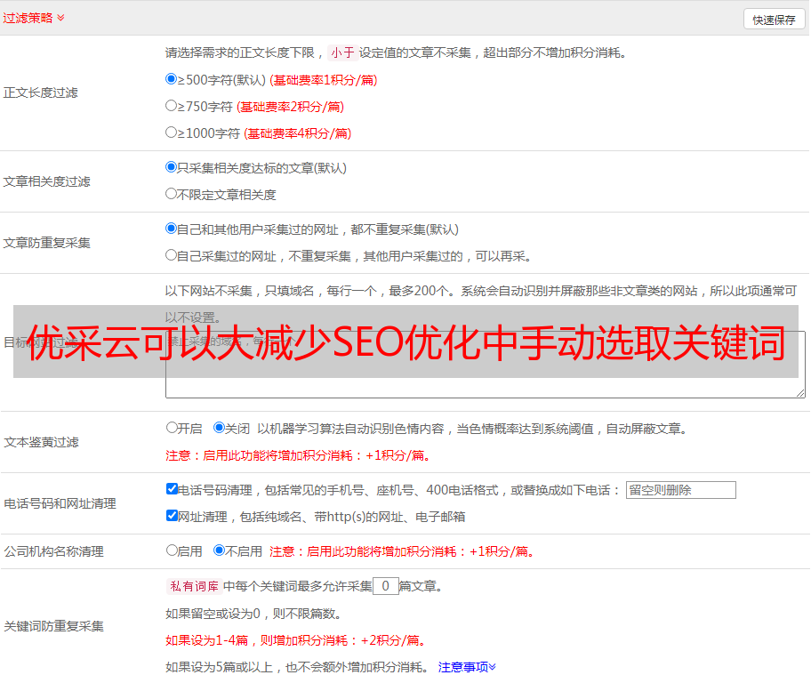 优采云可以大减少SEO优化中手动选取关键词
