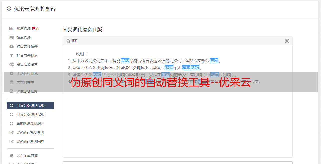 总之,优采云是一个强大而方便的SEO优化工具,能够帮助用户快速生成高质量的同义语句子。如果你想要尝试一下这个工具,你可以到它的官网www.ucaiyun.com上去看看。