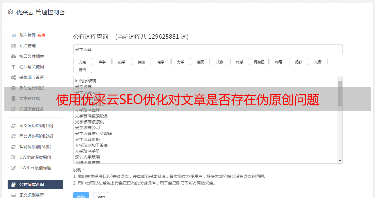 使用优采云SEO优化对文章是否存在伪原创问题