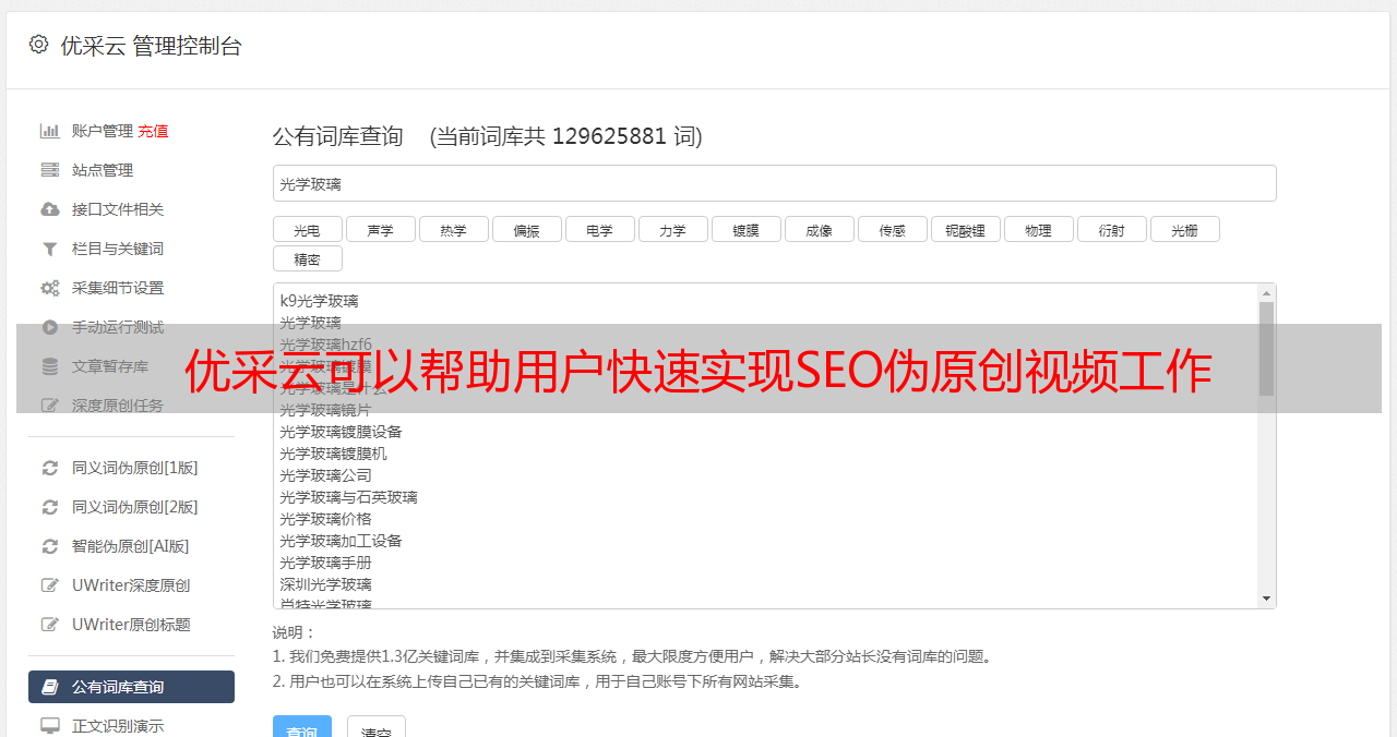 优采云可以帮助用户快速实现SEO伪原创视频工作
