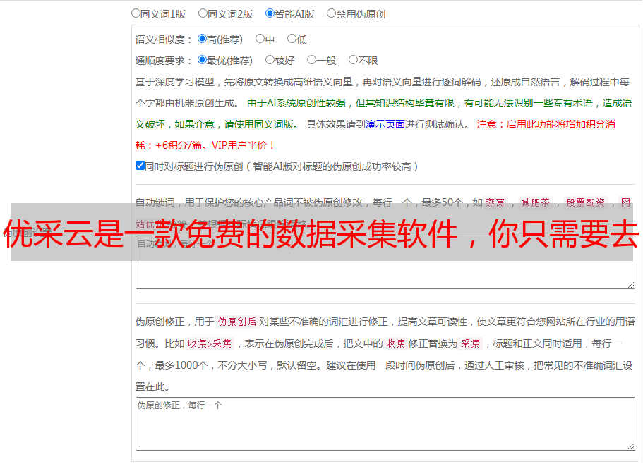 优采云是一款免费的数据采集软件,它使用SEO优化技术可以快速、准确地采集网页上的信息。它不需要安装,只需要在浏览器中打开https://www.ucaiyun.com/就可以使用。它具有一个相当整洁、易用的界面,无需复杂的学习过程就可以上手使用,而且还支持多种格式的文件导出(如JSON、CSV、HTML、Excel等),使用者可以方便地将采集到的数据导出到本地或远程服务器。