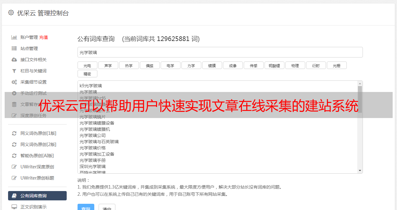 优采云可以帮助用户快速实现文章在线采集的建站系统