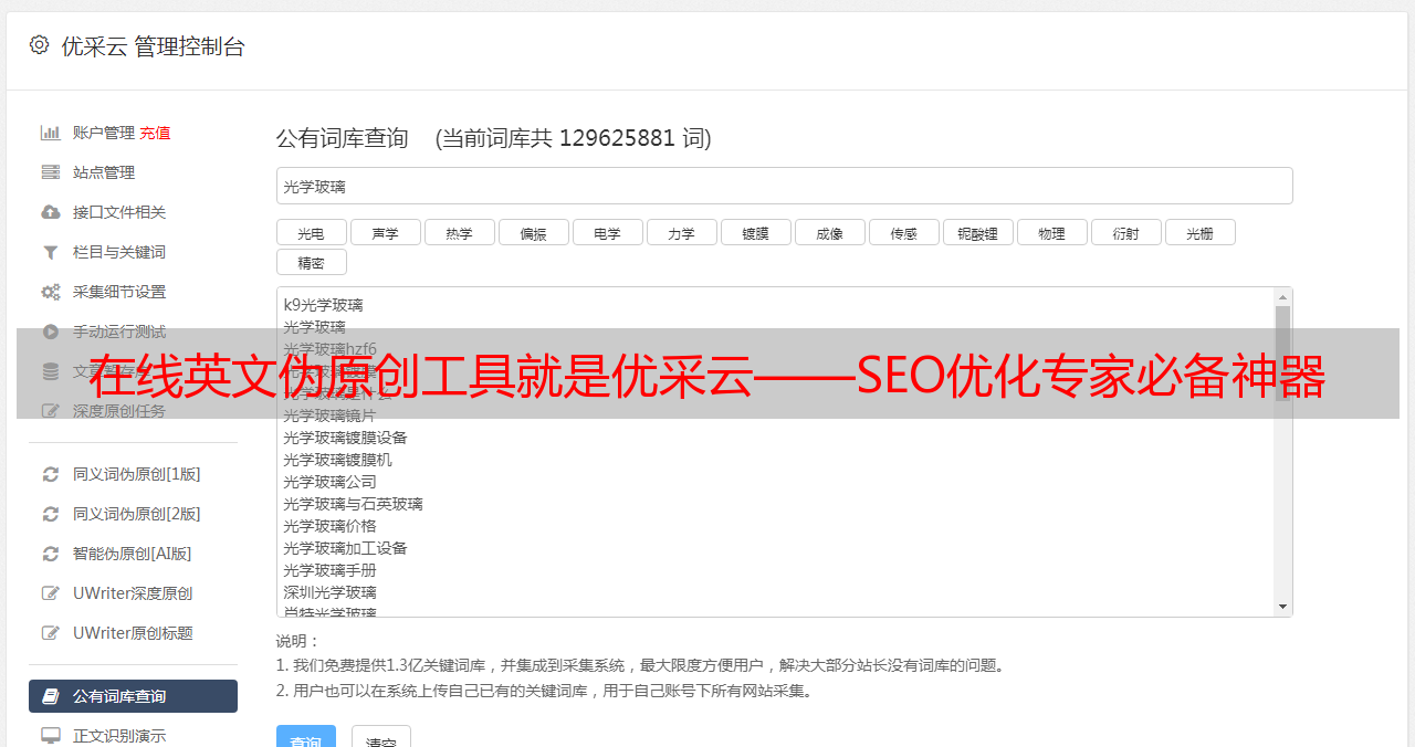 在线英文伪原创工具就是优采云——SEO优化专家必备神器