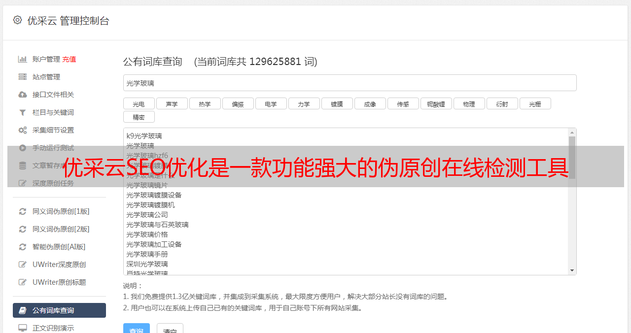优采云SEO优化是一款功能强大的伪原创在线检测工具