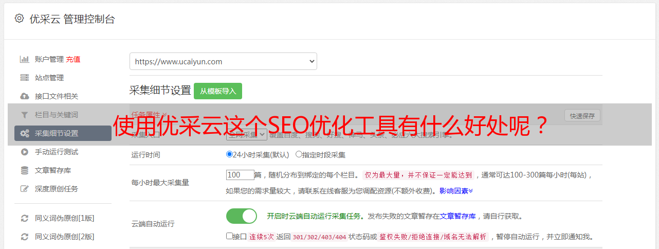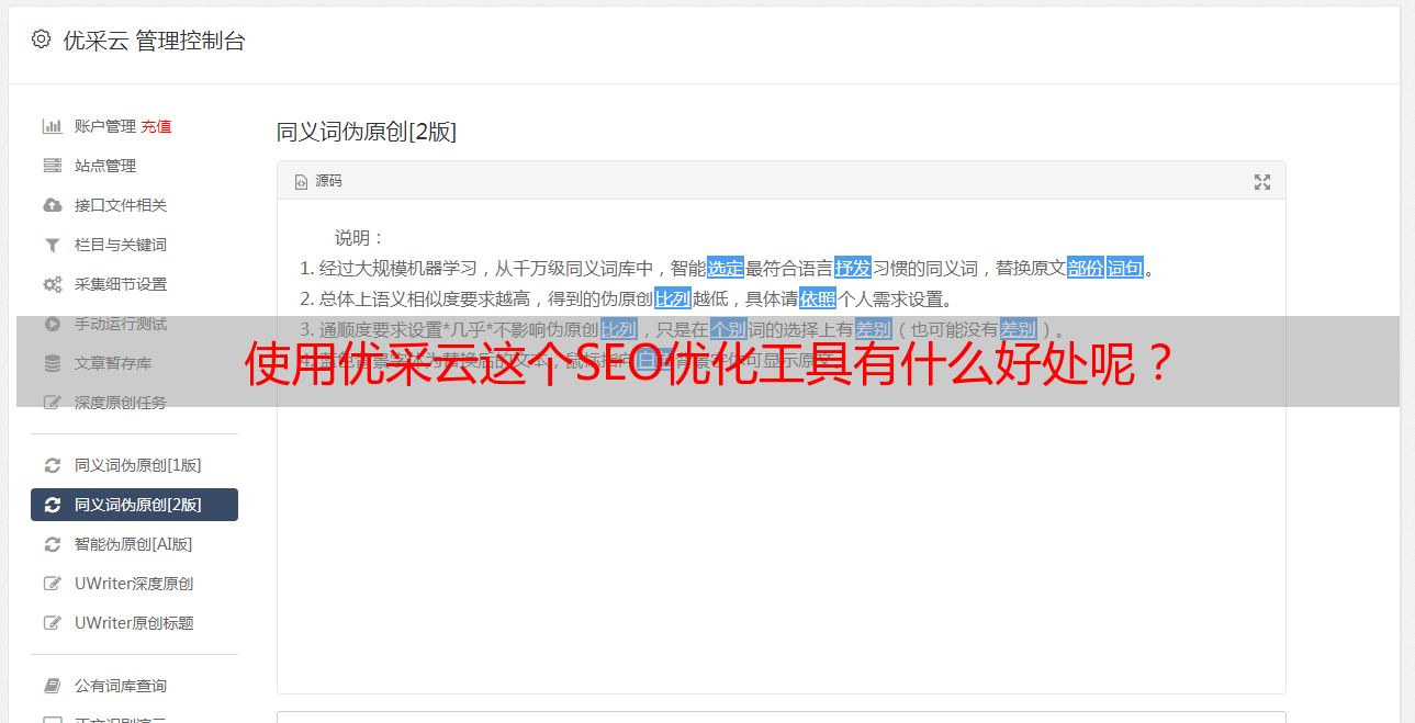 最后要说的是:如果你想要快速将自己的文章进行伪原创处理,并且要保证生成出来的内容质量和正确性,那么你一定不能错过使用优采云这个SEO 优化工具。你可以访问官网www.ucaiyun.com 来了解更多关于使用优采云工具带来的好处。