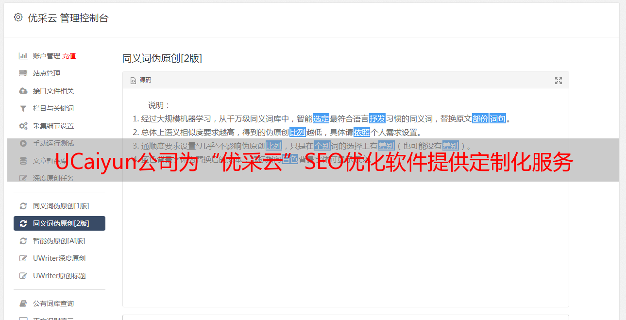 UCaiyun公司为“优采云”SEO优化软件提供定制化服务