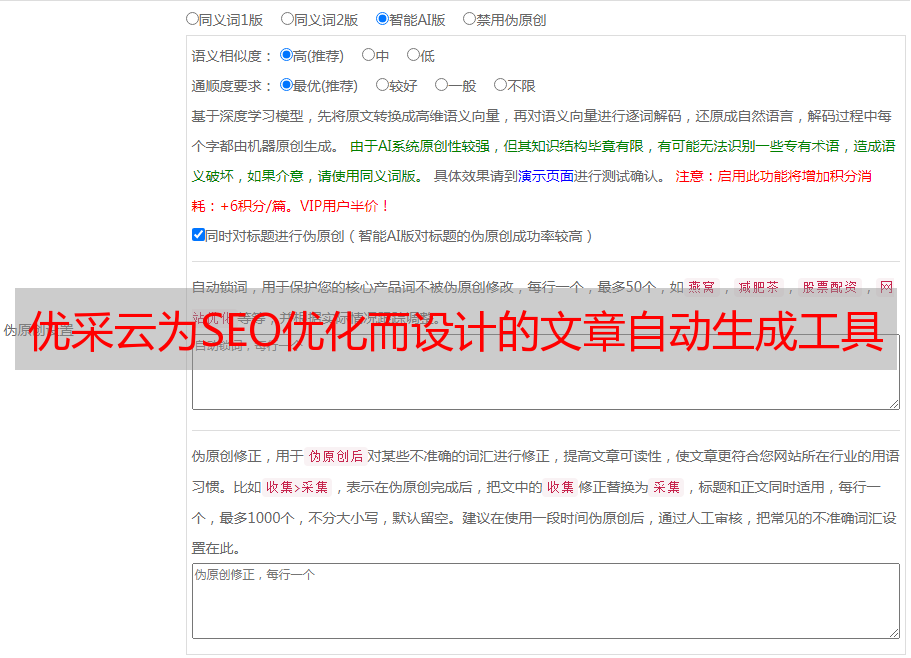 总之,使用优采云可以帮助用户快速、高效地生成出高质量、对SEO有利的文章内容。如果你想要使用优采云来帮助你生成高质量、对SEO有利的文章内容,可以前往www.ucaiyun.com进行注册和使用。