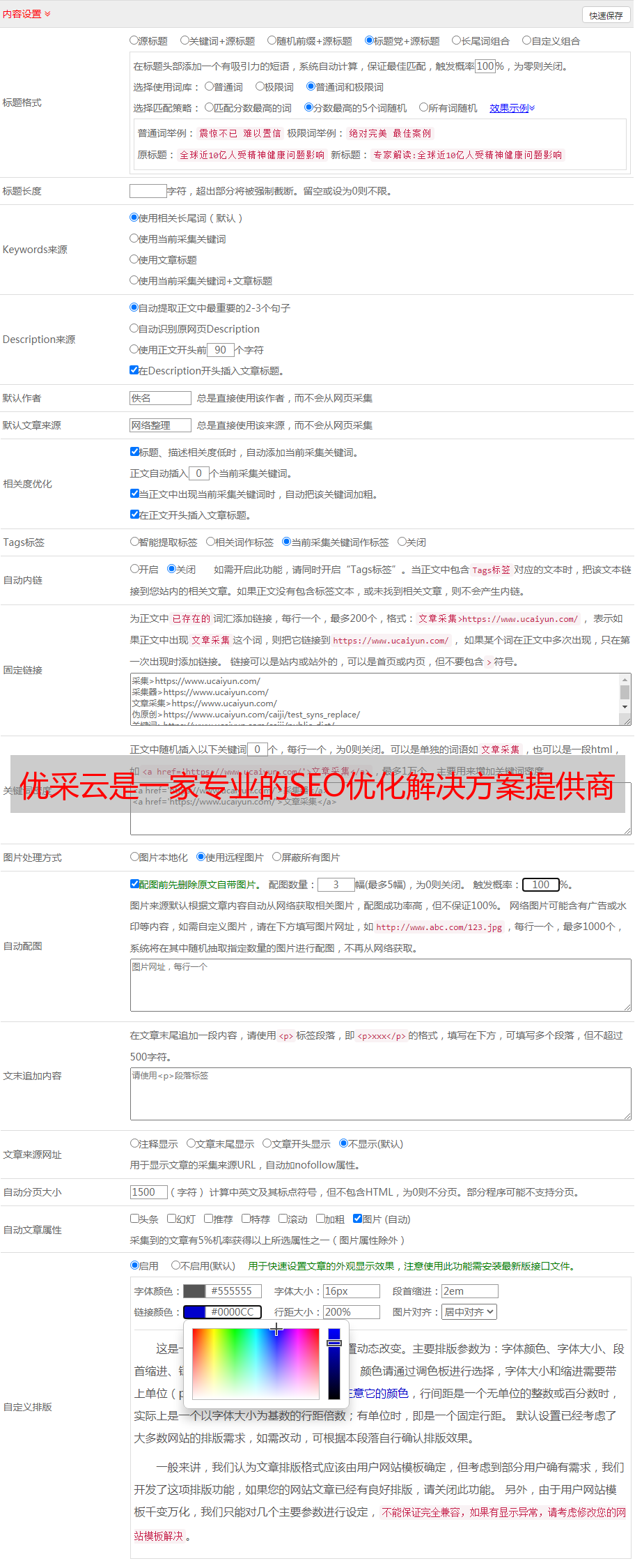 总之,优采云是一家专业的SEO优化解决方案供应商,其拥有一套新颖、便利、有效的SEO优化工具以及一套高可读性文章自动生成工具。通过使用这套工具,不仅能够帮助用户快速生成文章内容,而且能够大大减少SEO优化时间。因此,使用优采云可以为你带来无数便利。