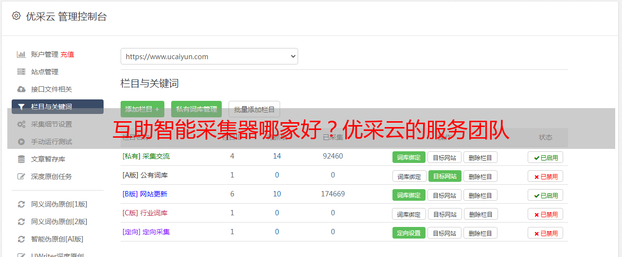 总之,优采云是目前市场上很好的一款互助智能采集器。它不但具备强大的功能性、易上手易使用、优质周到的*敏*感*词*特征,而且也是一个平台化的整体解决方案。如此强大而先进的工具一定是大多数人选用时首选之物。