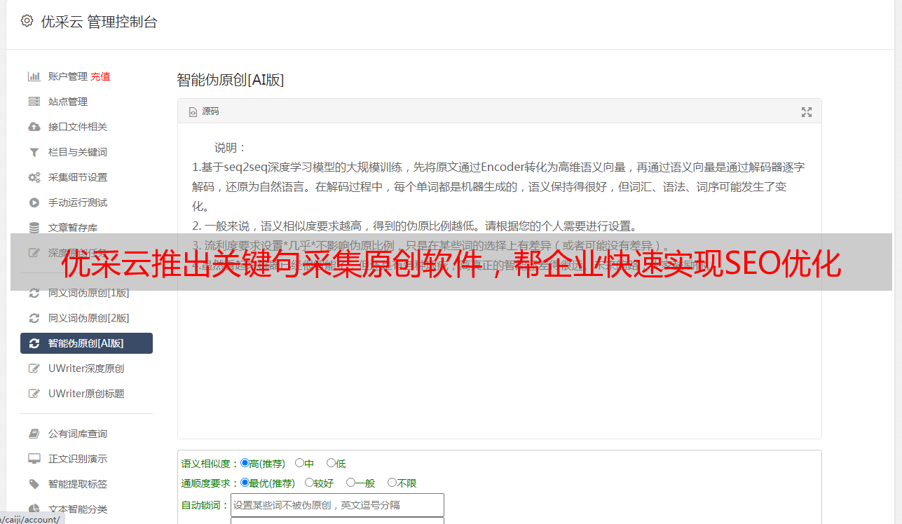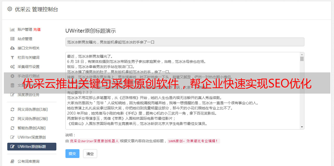 优采云推出关键句采集原创软件,帮企业快速实现SEO优化