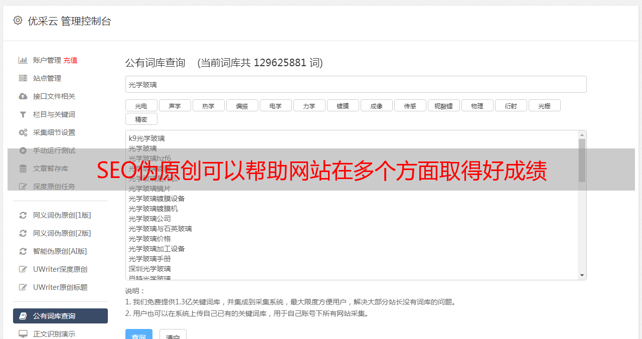 总之,SEO伪原创是一项特定的技术手段,可以通过修改文章内容和格式来使之看起来像是一篇全新的原创文章。使用出色的SEO优化工具——优采云就能有效地帮助你快速、准确、高效地将原始内容归并成一篇新文章,避免重复内容问题并且能够帮助你在搜索引擎中取得好成绩。想要了解详情请前往www.ucaiyun.com 了解相关信息。