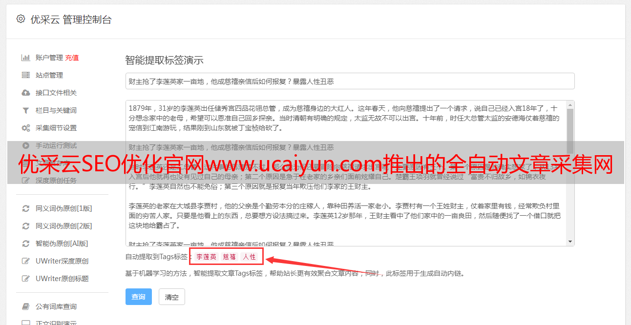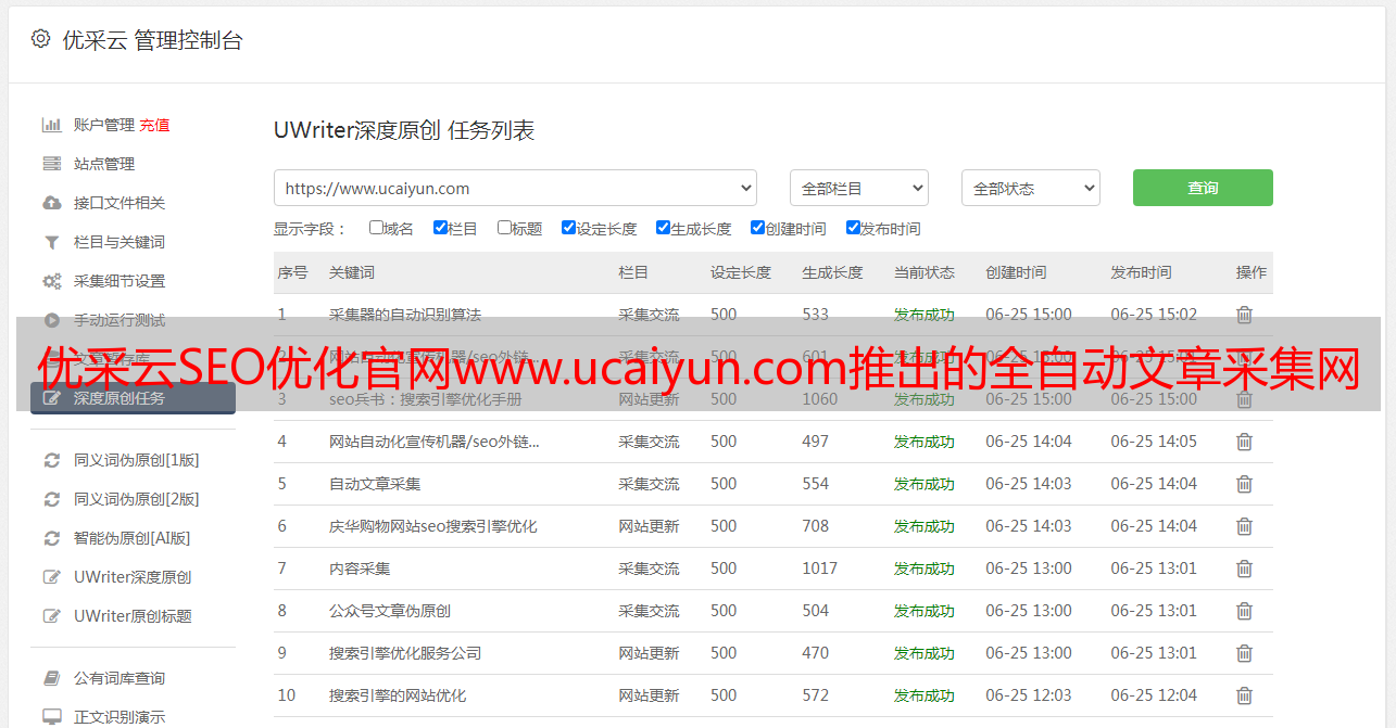 优采云SEO优化官网www.ucaiyun.com推出的全自动文章采集网源码2020