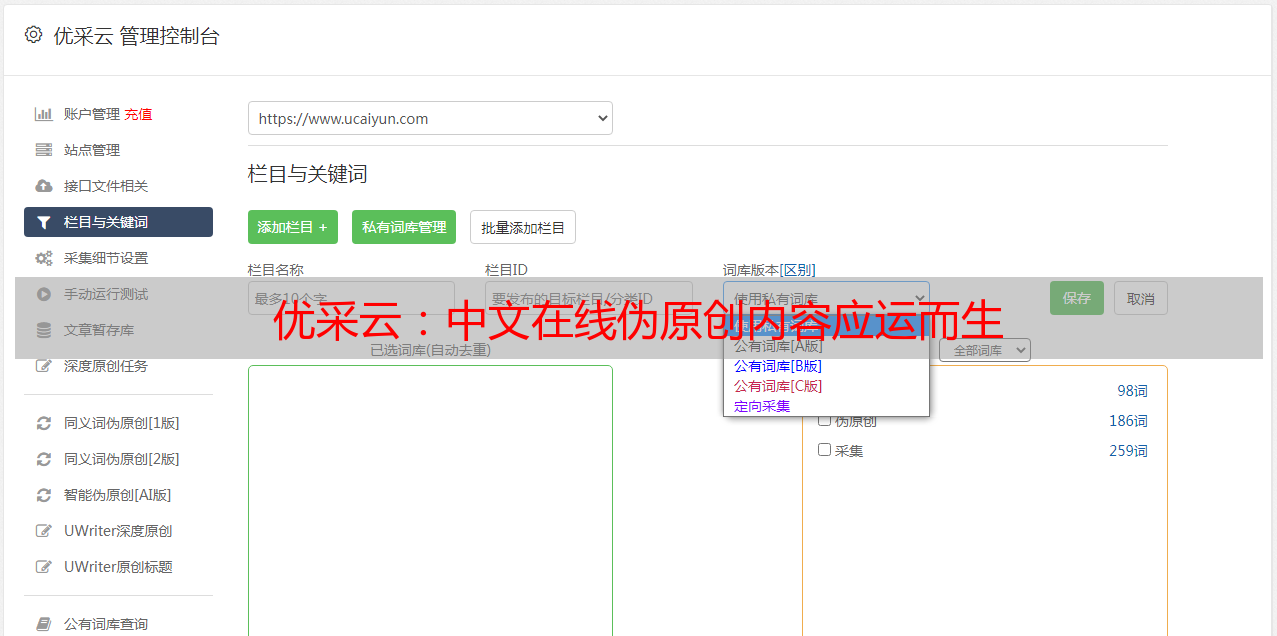 总之,中文在线伪原创是一项非常有用的技术,能够帮助用户生成具有独特性、SEO 优化、保护版权的高质量内容。如果想要快速、准确生成高质量的中文在线伪原创内容,就可以使用专业的工具和服务例如“优采云”(www.ucaiyun.com)。