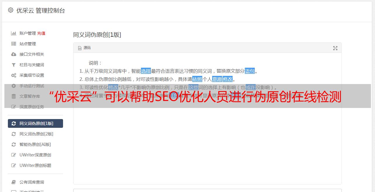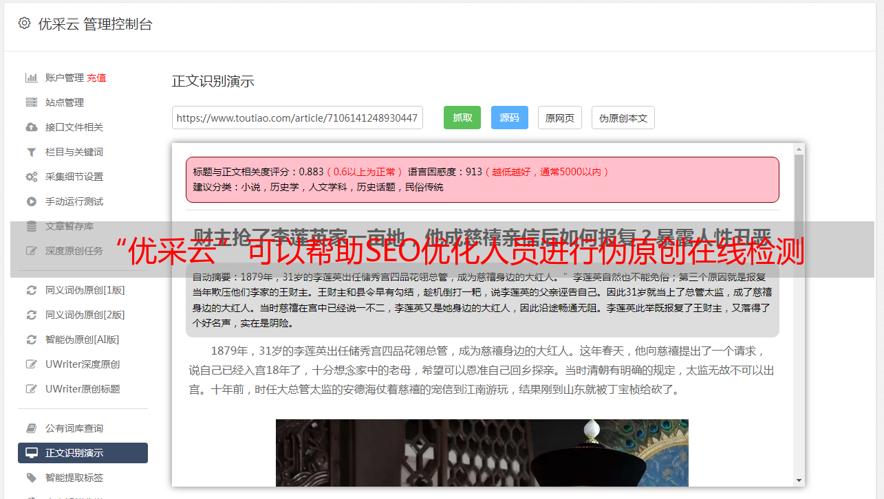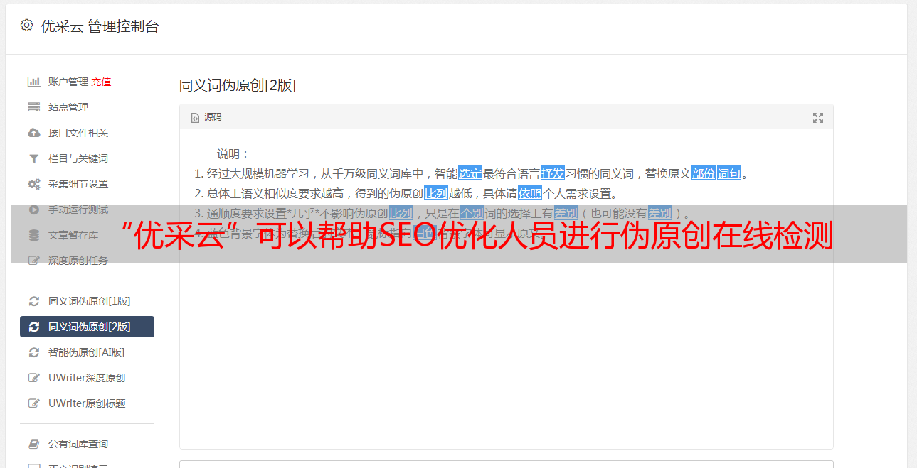 “优采云”可以帮助SEO优化人员进行伪原创在线检测