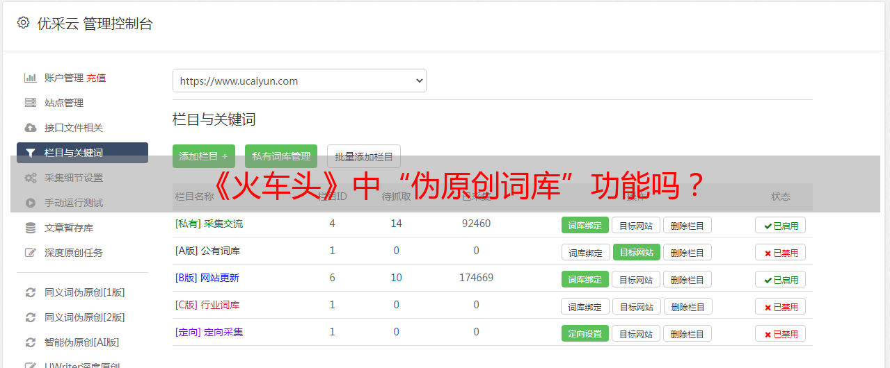 优采云 发布时间: 2023-02-02 07:27火车头伪原创词库,是一款由优采云公司开发的SEO优化软件,它主要通过把源文本中的关键词替换成词库中的其他词,实现对文章内容的伪原创,让文章看起来更加丰富有新意,同时也能保留原有文章的大部分精髓,从而避免被搜索引擎标记为重复内容而影响排名。