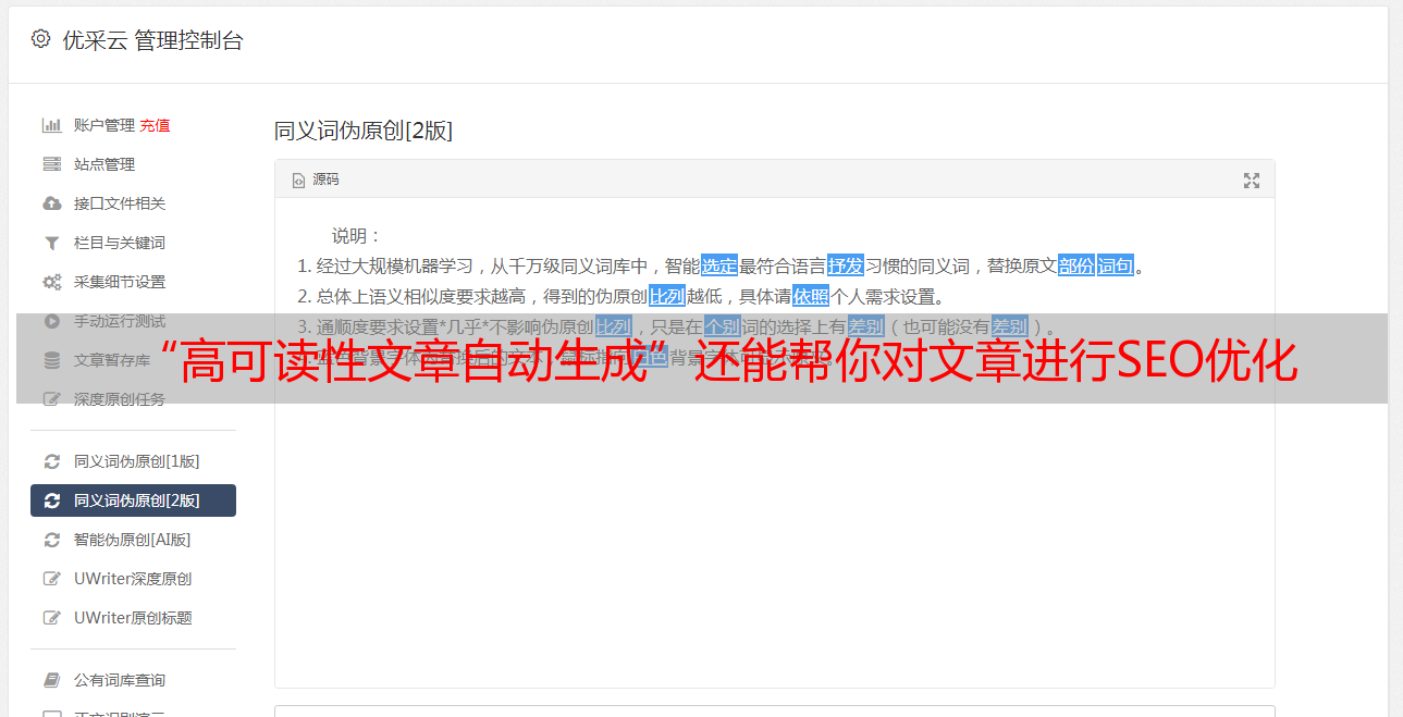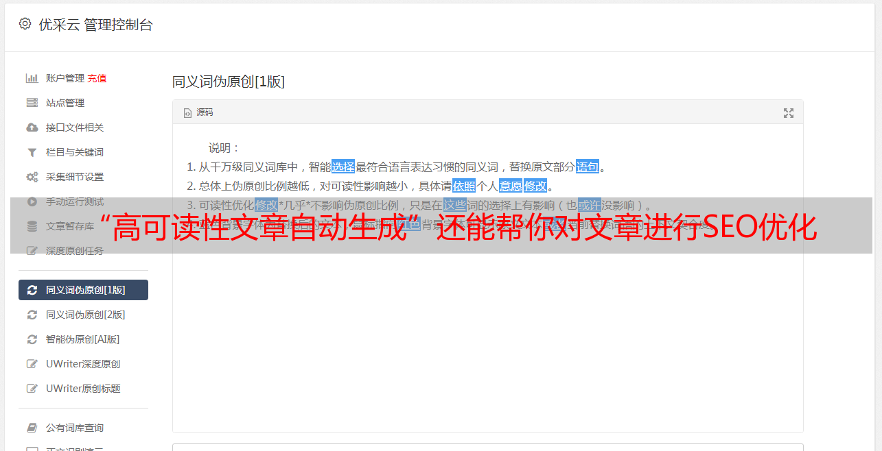 “高可读性文章自动生成”还能帮你对文章进行SEO优化