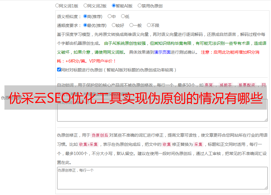 最后要注意的是:即使是由优采云SEO优化工具生成的伪原创也不能完全避免被识别出来造成不良影响。因此在使用时要注意避免大量并存使用相同生成方式生成的文章并存在各大平台上面。