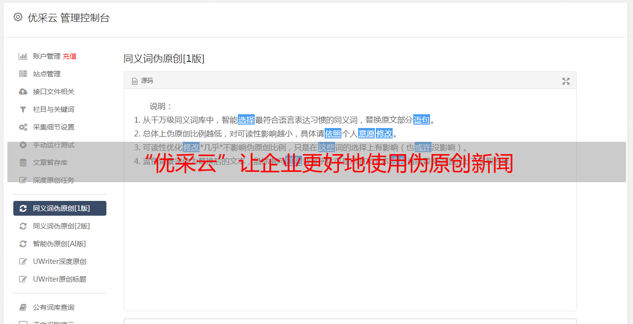 总之,“优采云”是一款高效、易用、专业的SEO工具,既能够有效地提升流量,又能够保证新闻内容合规性。如果你想要快速、准确地生成大量伪原创新闻内容,不妨考虑使用“优采云”试试吧!