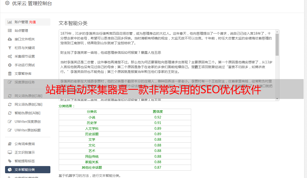 优采云是一款强大的SEO优化软件,可以帮助企业快速而有效地实现SEO目标。它可以通过对整个站群进行分析和优化来帮助企业实现其搜索引擎优化目标。此外,该软件还可以帮助企业将内容分发到不同的平台上,使其能够获得最大的流量和影响力。