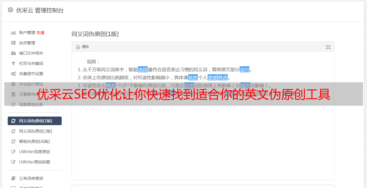 优采云SEO优化让你快速找到适合你的英文伪原创工具