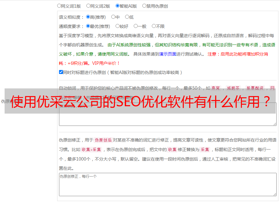 此外,优采云公司的SEO优化软件还能够方便快捷地实现对医疗行业信息的伪原创。所谓伪原创就是将已有内容进行一定的重新加工,使其看起来像是原创内容,而实际上却不是。通过使用优采云公司的SEO优化软件,用户只需要将已有内容复制到软件中即可快速生成一份看起来像是原创内容的文章。