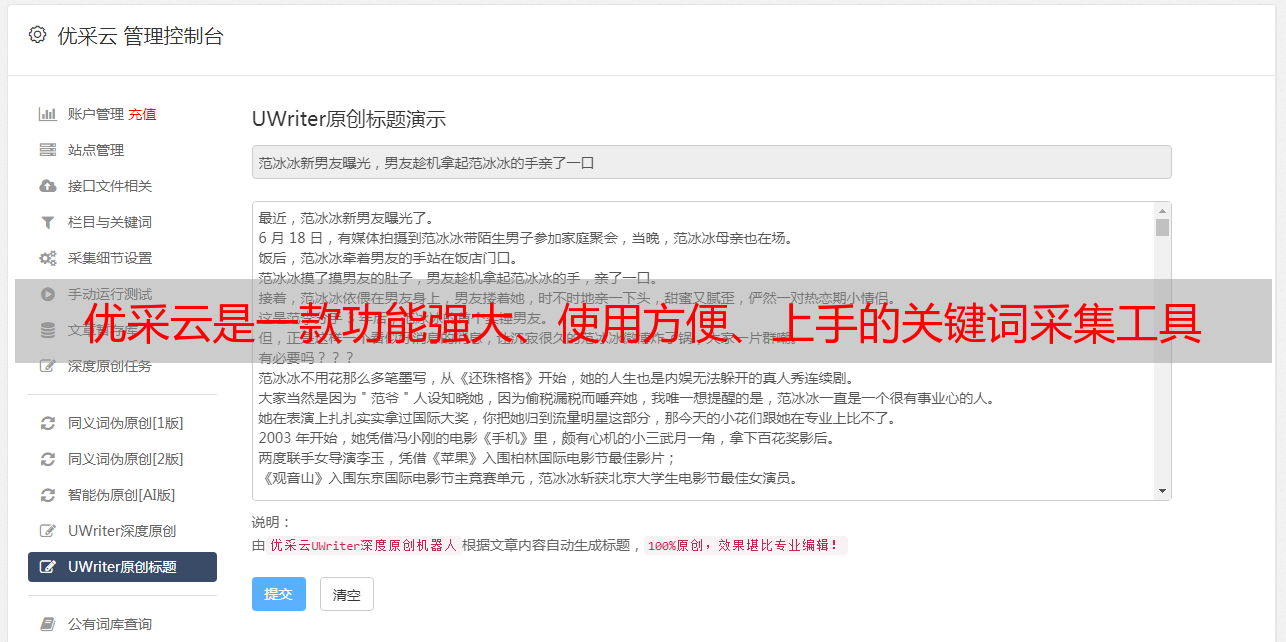 优采云是一款功能强大、使用方便、上手的关键词采集工具