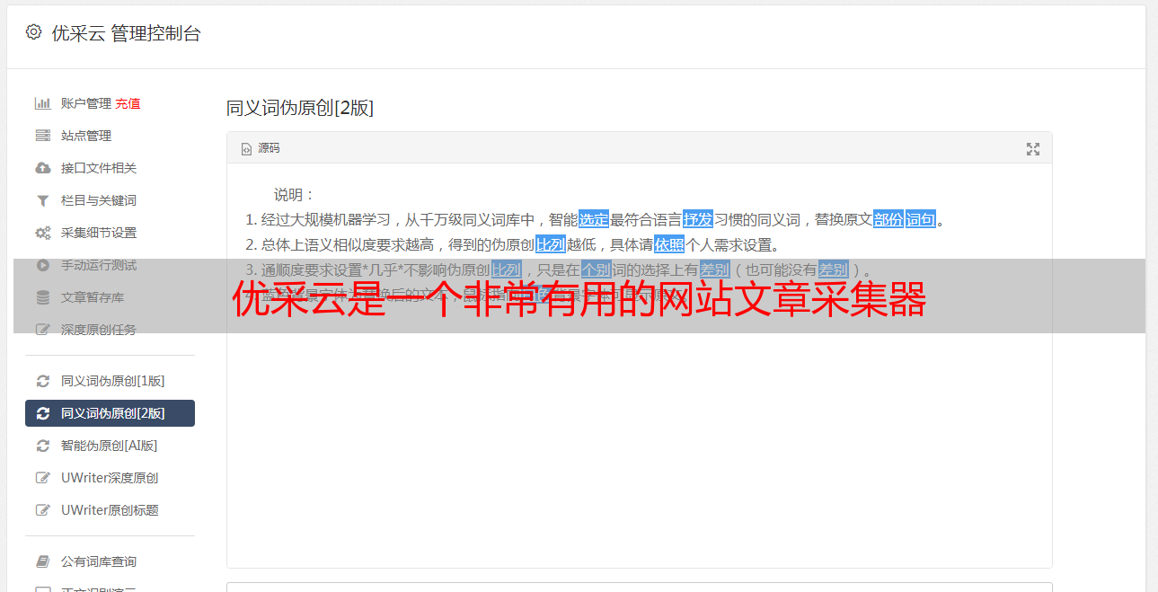 总之,优采云是一个强大的工具,可以帮助用户快速有效地将来自各个网站的内容整合到一起,并通过SEO优化、数据分析和其他功能来最大化内容的影响力。如果你正在寻找一个出色的文章采集工具,不妨试试优采云(www.ucaiyun.com )。