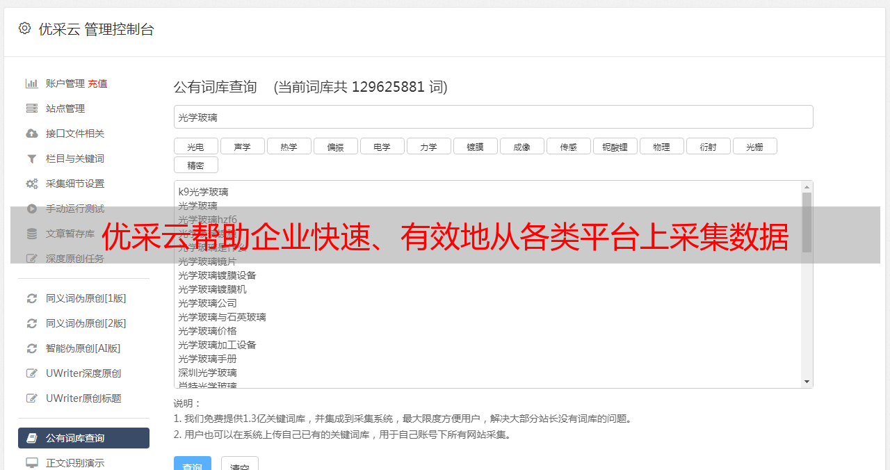 优采云帮助企业快速、有效地从各类平台上采集数据