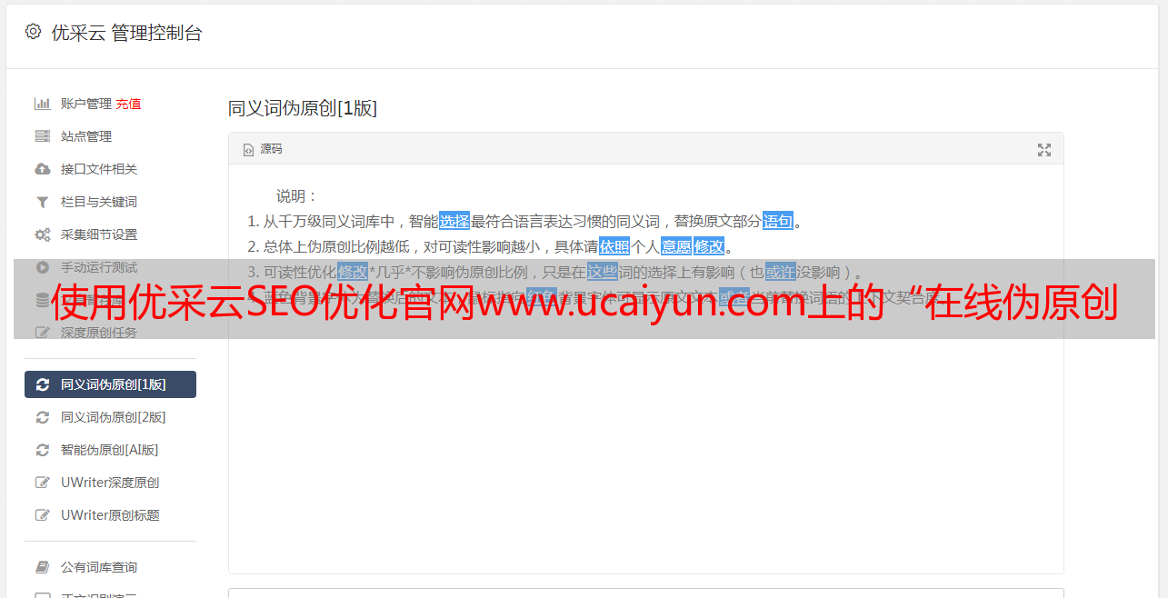使用优采云SEO优化官网www.ucaiyun.com上的“在线伪原创检测”工具