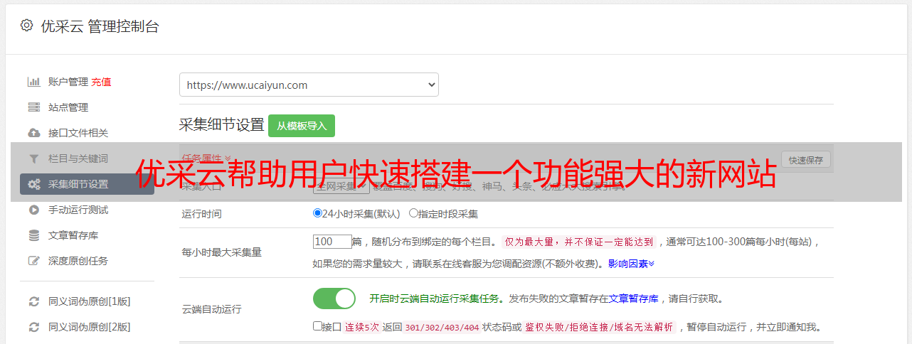 总之,如果你想要快速、便利地建设一个性能出色而且具有SEO优化功能的新网站,那么你应当考虑使用优采云作为你的选择之一。你可以在它官方网站www.ucaiyun.com上找到详尽的使用教程以及相关信息。