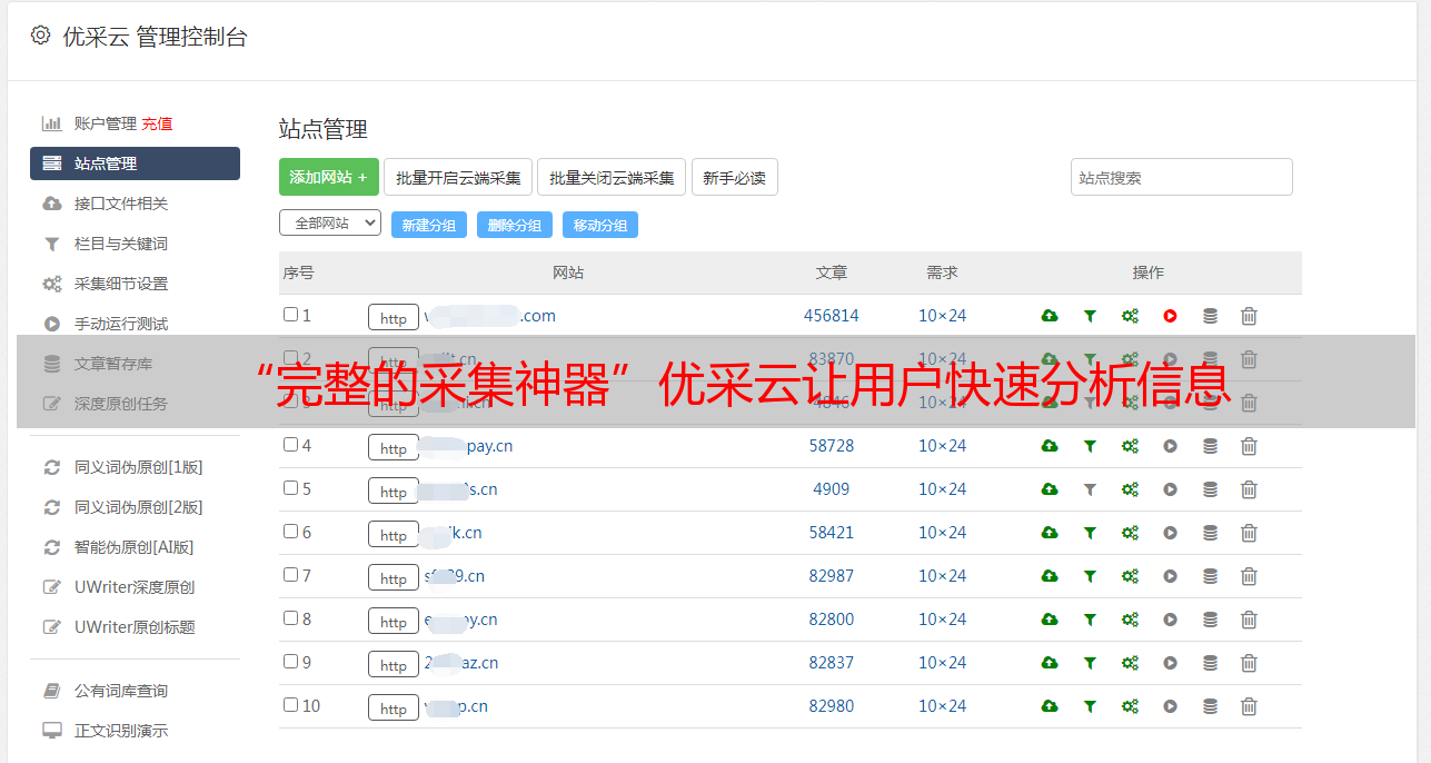 优采云是一款新一代的采集软件,由国内知名软件公司开发,它能够让用户快速、高效地获取网络上各种信息,从而帮助用户迅速地进行信息处理和分析。