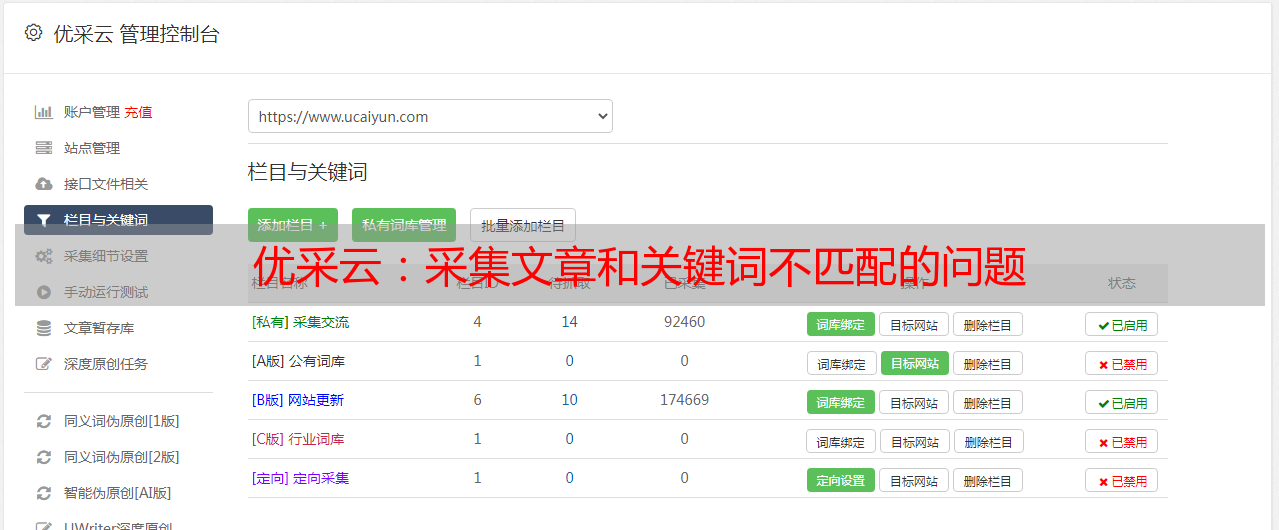 总而言之,要避免采集的文章和关键词不匹配的问题,必须使用正确准确的信息来源、正规可靠的采集工具和遵循一定原则来进行信息搜集。优采云就是一款功能强大、性能卓越的SEO优化工具(官网:www.ucaiyun.com ),可以有效帮助用户避免“采集文章和关键词不匹配”问题。
