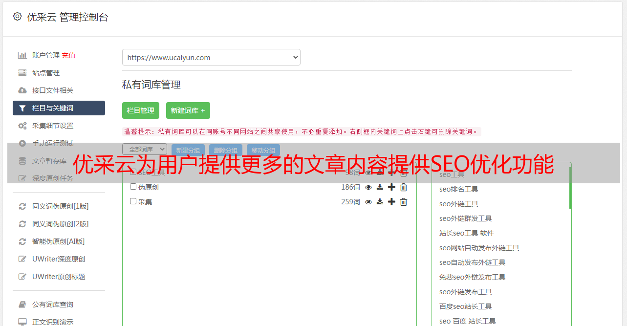优采云为用户提供更多的文章内容提供SEO优化功能