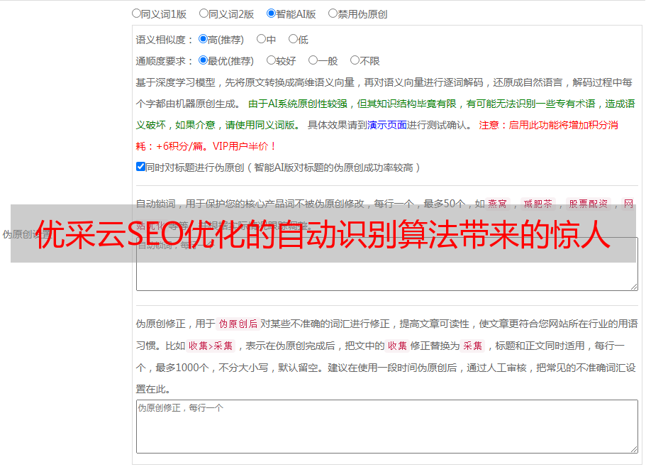 优采云SEO优化是一款专业的网页采集器,它具有强大的自动识别能力。优采云SEO优化的自动识别算法可以帮助用户快速、准确地提取信息,使用户能够轻松获取所需信息。其核心原理是:根据用户所需信息的特征,通过自动学习、规则匹配和正则表达式进行信息识别和整理。