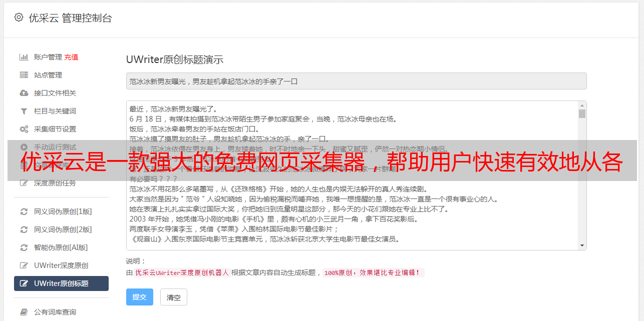 优采云是一款强大的免费网页采集器,帮助用户快速有效地从各个网站上采集到所需要的内容