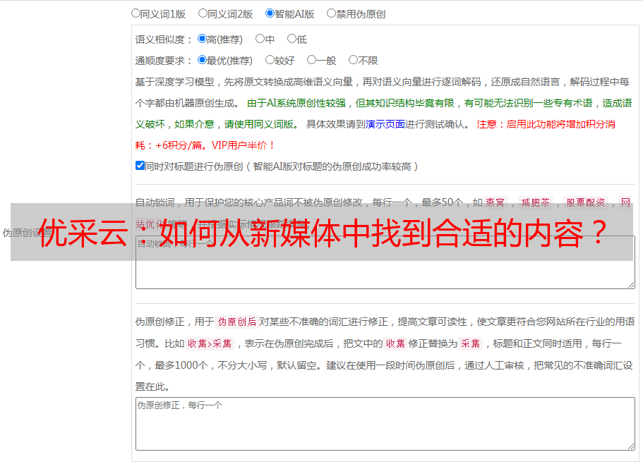 首先,用户可以根据自己的需要进行关键字过滤,将不符合要求的内容剔除;然后根据用户所处行业特性进行SEO优化,使其能够在各大新媒体平台上准确快速地找到想要找到的相应内容。此外,优采云还具备一键采集功能,用户可以直接一键将相应内容采集到自己的平台上。