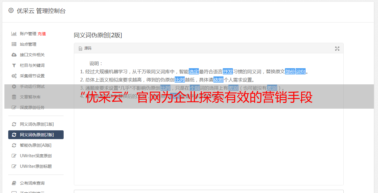 优采云 发布时间: 2023-02-06 05:30随着互联网的发展,网络营销已成为当今时代最重要的行业之一。企业不仅要提升自己的品牌形象,还要在众多竞争对手中脱颖而出,这就要求企业不断探索有效的营销手段。在这样的大背景下,伪原创*敏*感*词*应运而生。
