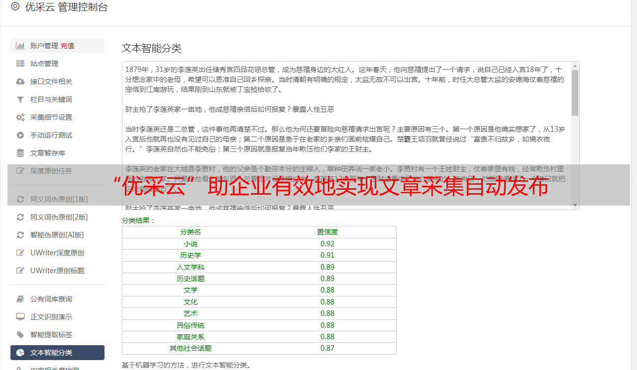 “优采云”不仅能够快速、有效地实现文章采集自动发布,而且还能够方便地对文章内容进行相应的修改和分析。例如:用户可以根据不同平台的特性,对文章内容进行相应的修改和分析。此外,该软件还能够根据用户的关注度和回复情况来评估文章内容的影响力。