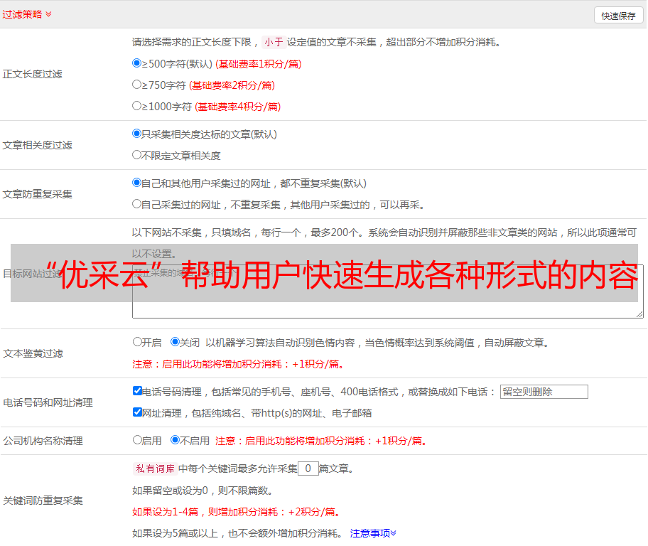 “优采云”帮助用户快速生成各种形式的内容