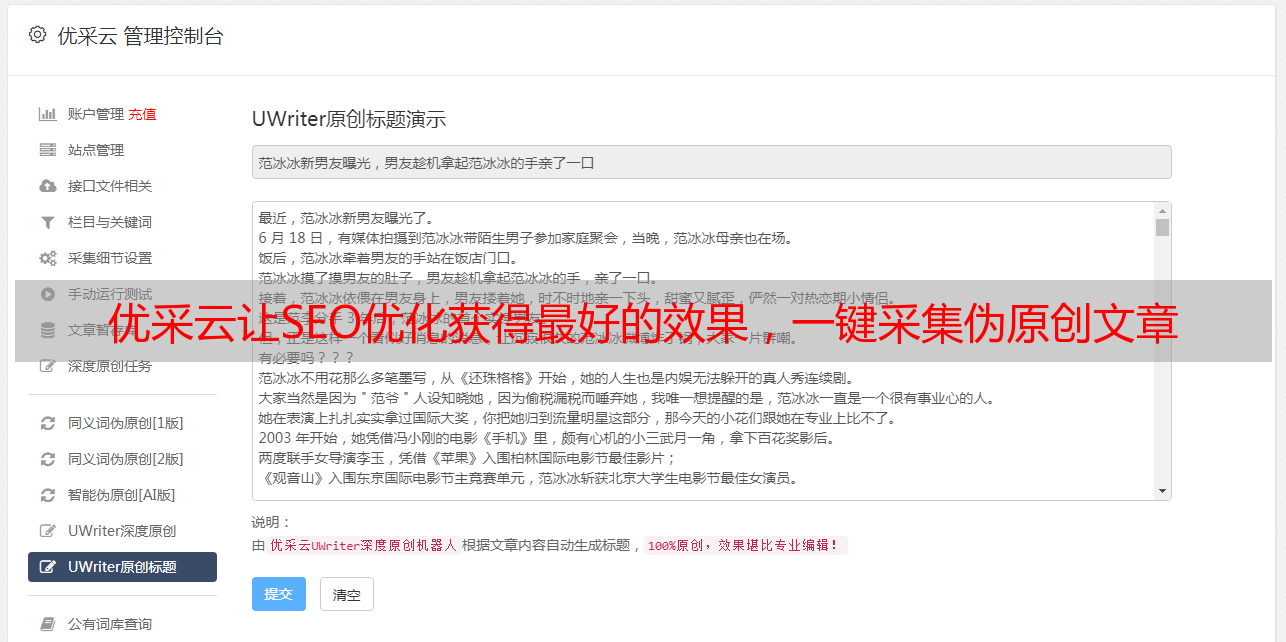 优采云让SEO优化获得最好的效果,一键采集伪原创文章