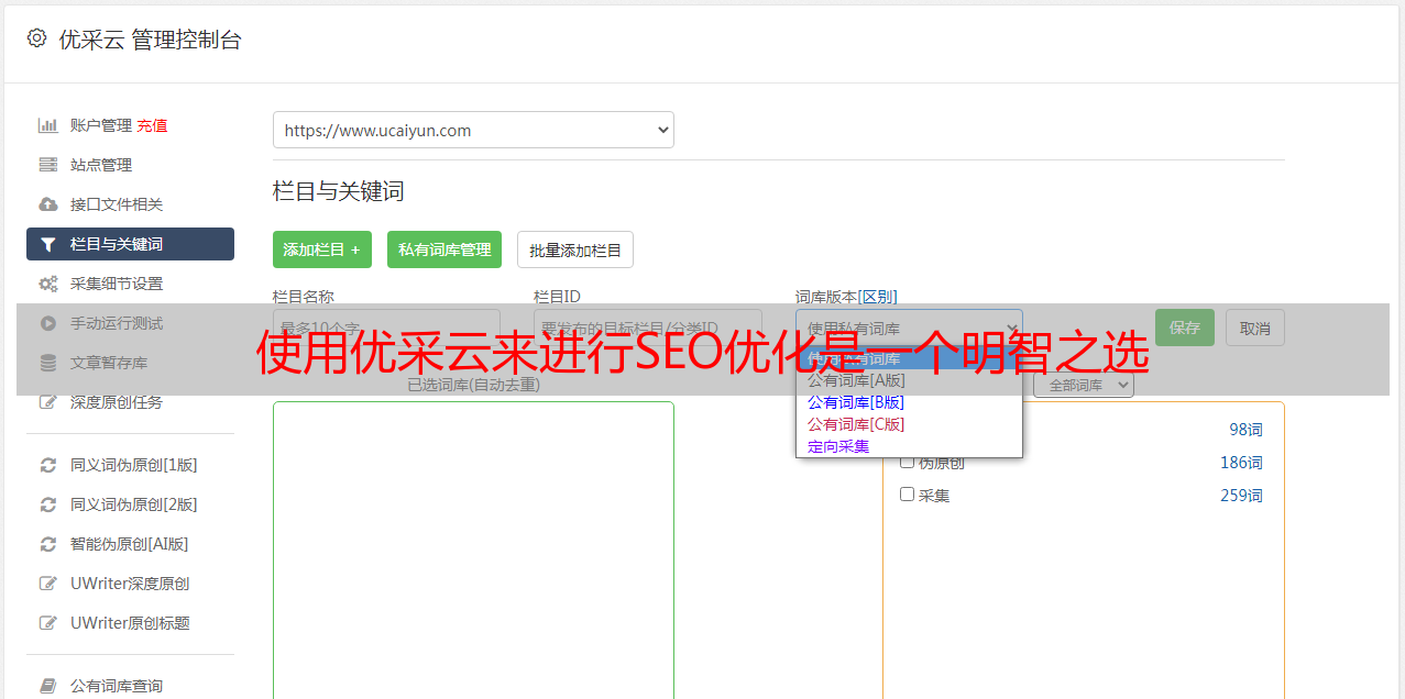 但是,如今出现了一款可以根据用户选定的关键词自动采集生成内容的SEO优化系统——优采云(Ucaiyun)。它能够根据用户选定的关键词和相关内容自动生成新内容,无需用户手动打理,大大减少了企业对SEO优化的人力物力投入。