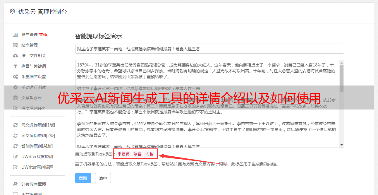 优采云AI新闻生成工具的详情介绍以及如何使用