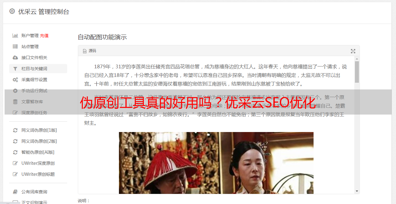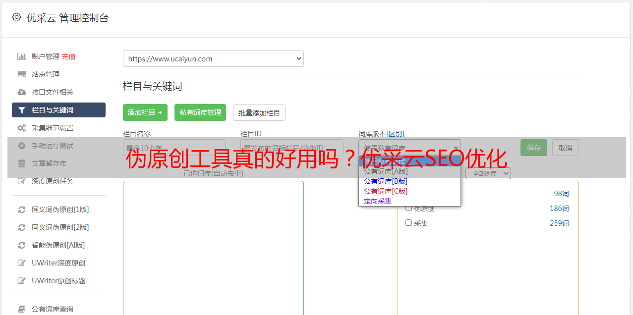 优采云 发布时间: 2023-02-07 21:33随着SEO优化技术的发展,伪原创工具也越来越受到网络市场人士的重视。它们能够帮助网站主使用有效的内容进行搜索引擎优化,从而大大提高网站在搜索引擎中的排名。但是,伪原创工具真的好用吗?