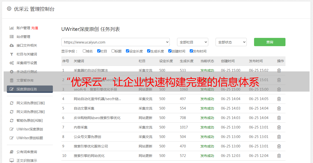 优采云 发布时间: 2023-02-08 00:42随着互联网技术的发展,互联网技术已成为社会发展的重要助推剂。但是,如何将互联网技术发挥到最大效用,以实现企业信息化、网站建设、市场推广和其他目标?这就需要一个完善的网站体系,而这就要依靠“建站系统采集器”。