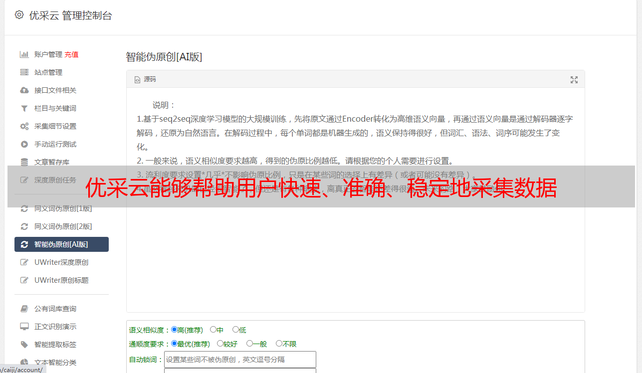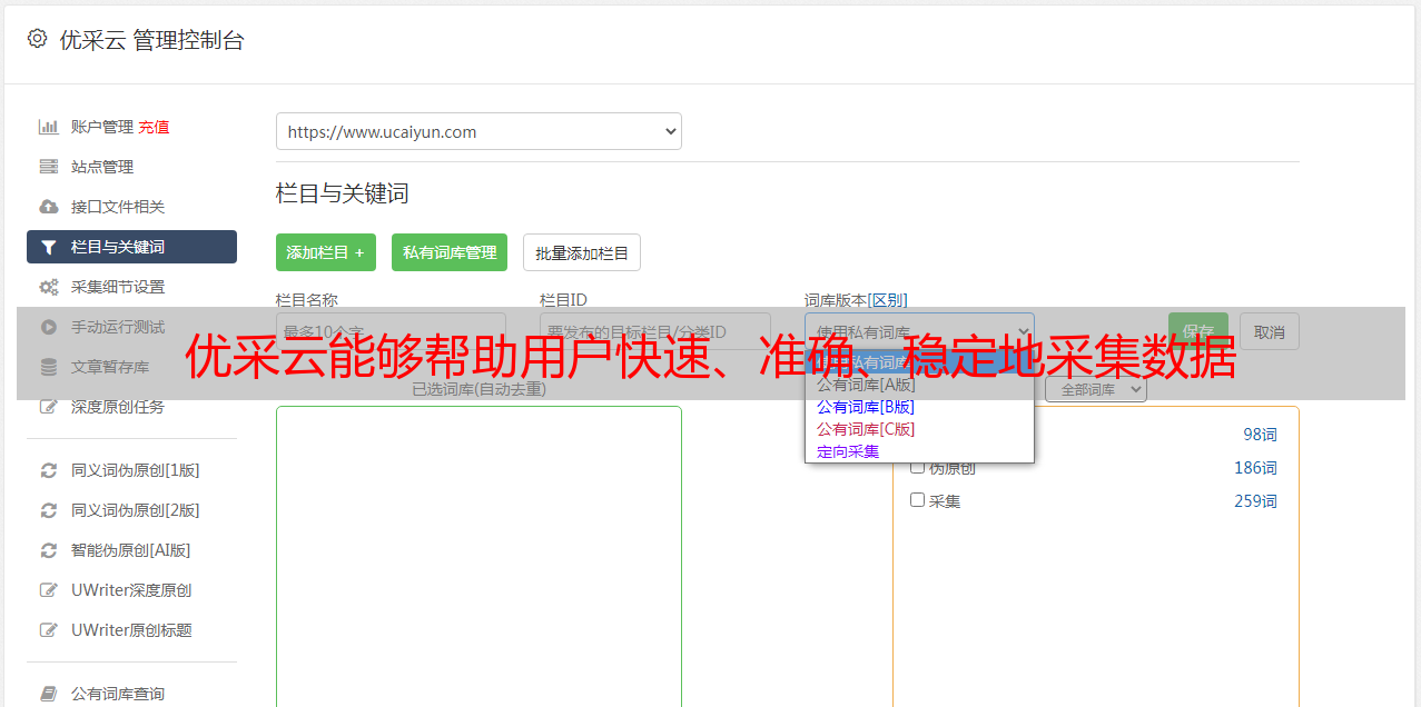 优采云能够帮助用户快速、准确、稳定地采集数据