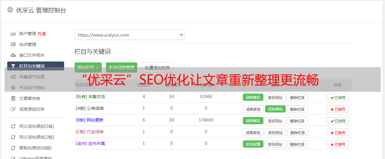 总之,“优采云” SEO 优化是一款强大易用的 SEO 优化工具,既可以帮助用户将文章重新书写整理并使其流畅易读,也可以帮助用户将文章中出现的关键词进行SEO 优化。想要体验“优采云” SEO 优化带来的便利吗?快来 www.ucaiyun.com 下载吧!