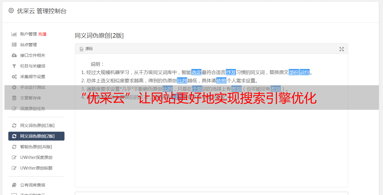 总之,“优采云”作为一个新型SEO优化工具,其超强的性能,使得SEO 优化工作快速并精准的得到加速.想要体验“优采云”的力量,欢迎进入其官网 www.ucaiyun.com 进行体验!
