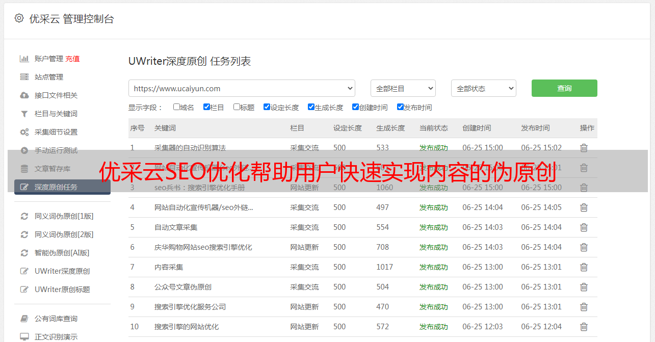 优采云SEO优化帮助用户快速实现内容的伪原创