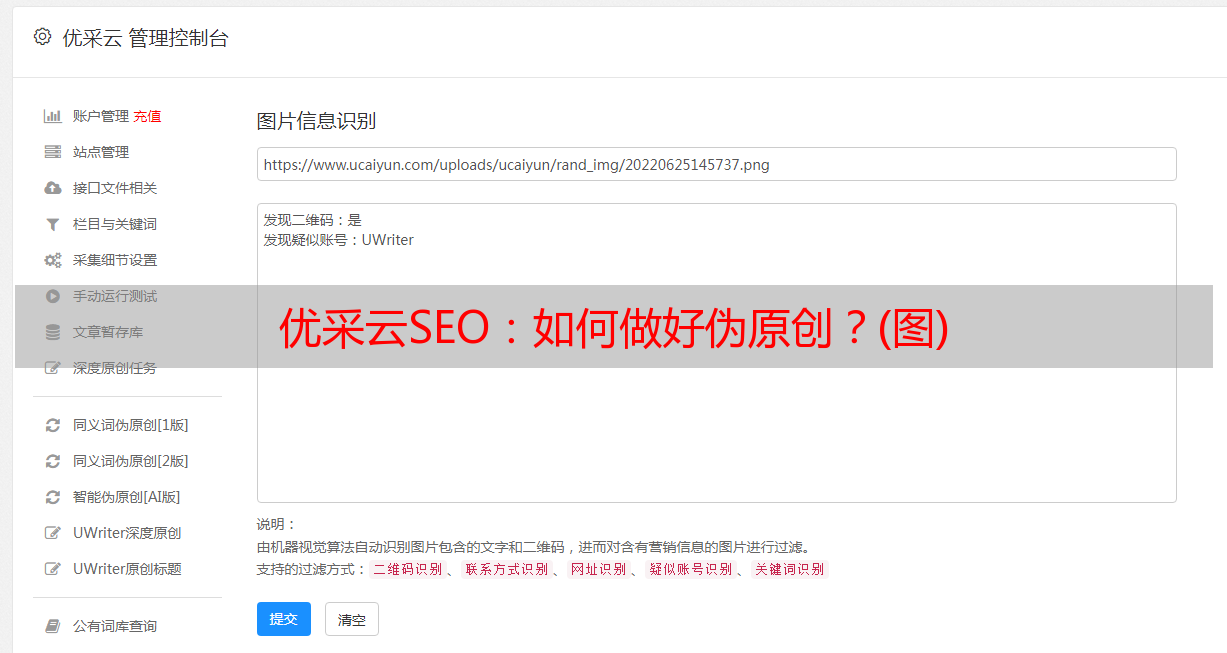 其次,在准备文章内容时,可以选择使用一些工具来加快整理文章内容和检查原创度的速度。例如优采云SEO优化工具,官网www.ucaiyun.com,他能帮助您快速、准确地判断文章是否为原创文章。此外,还可以使用一些在线搜索引擎来帮助找出相关的信息。只要有一定的耐心和谨慎,就能将这些信息整理成一篇有特色、有深度的文章。